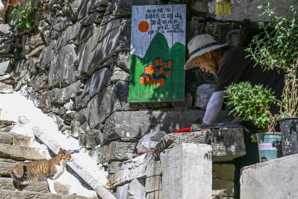 19日、昼食の食材を準備する陽産村の住民。(黄山=新華社記者/黄博涵)