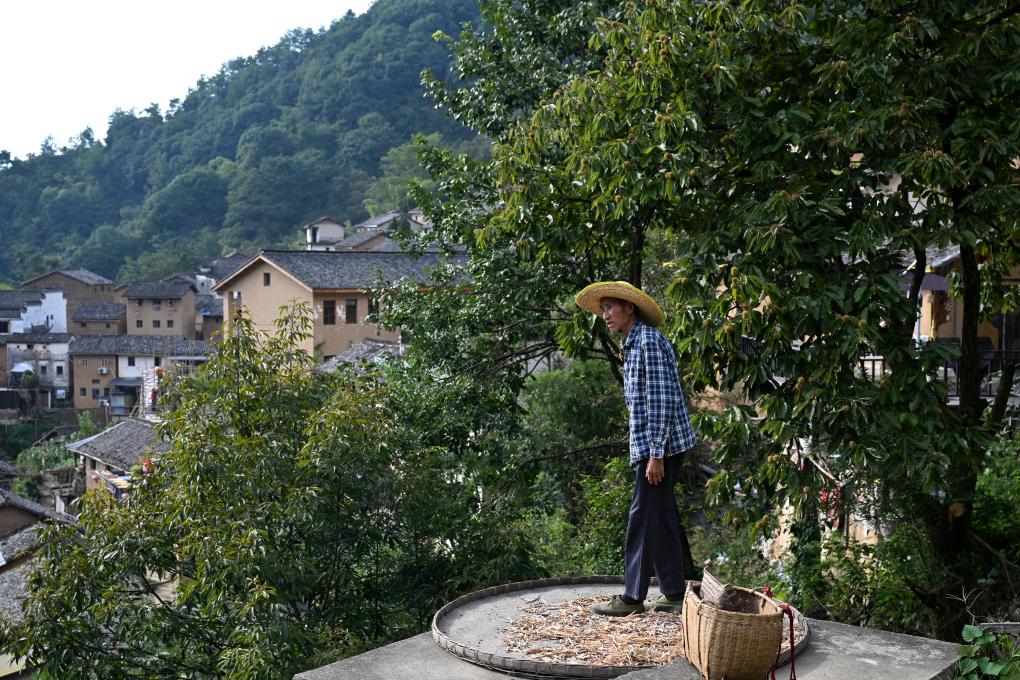 17日、陽産村で農作業をする住民。(黄山=新華社記者/黄博涵)