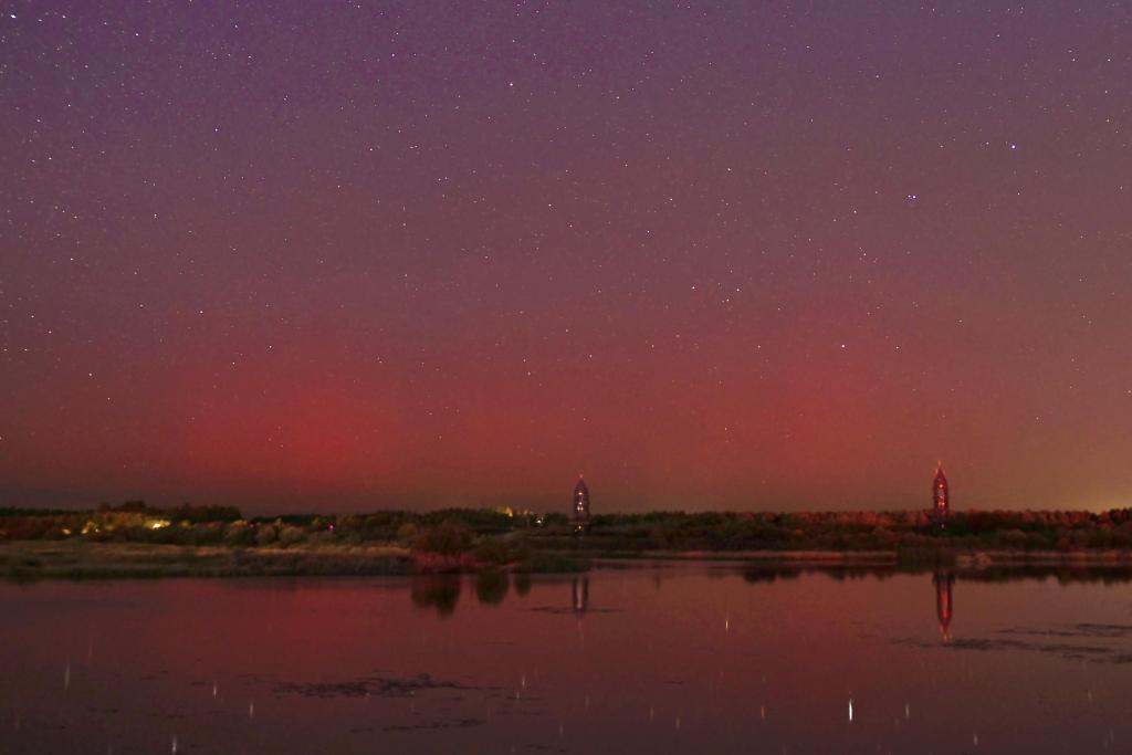 30日、黒竜江省富錦市で撮影したオーロラ。(富錦=新華社配信/曲玉宝)