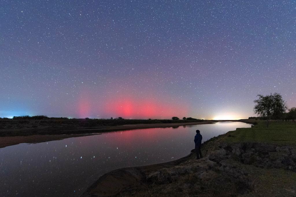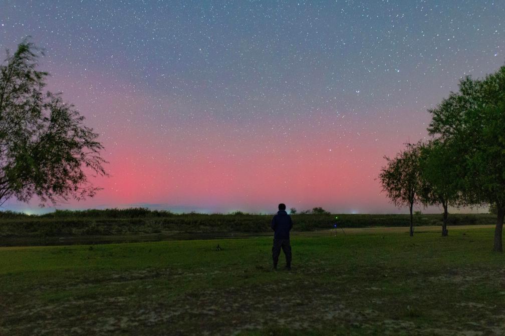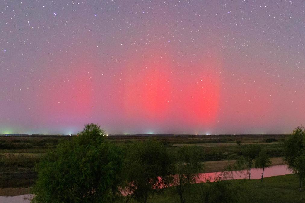 29日、黒竜江省富錦市で撮影したオーロラ。(富錦=新華社配信/曲玉宝)