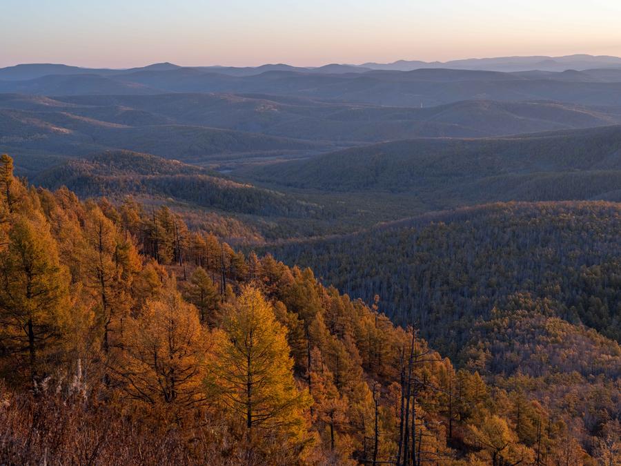 【新華社フルンボイル9月30日】中国内モンゴル自治区フルンボイル市の大興安嶺山脈西側斜面には、深まる秋の風景が広がっている。