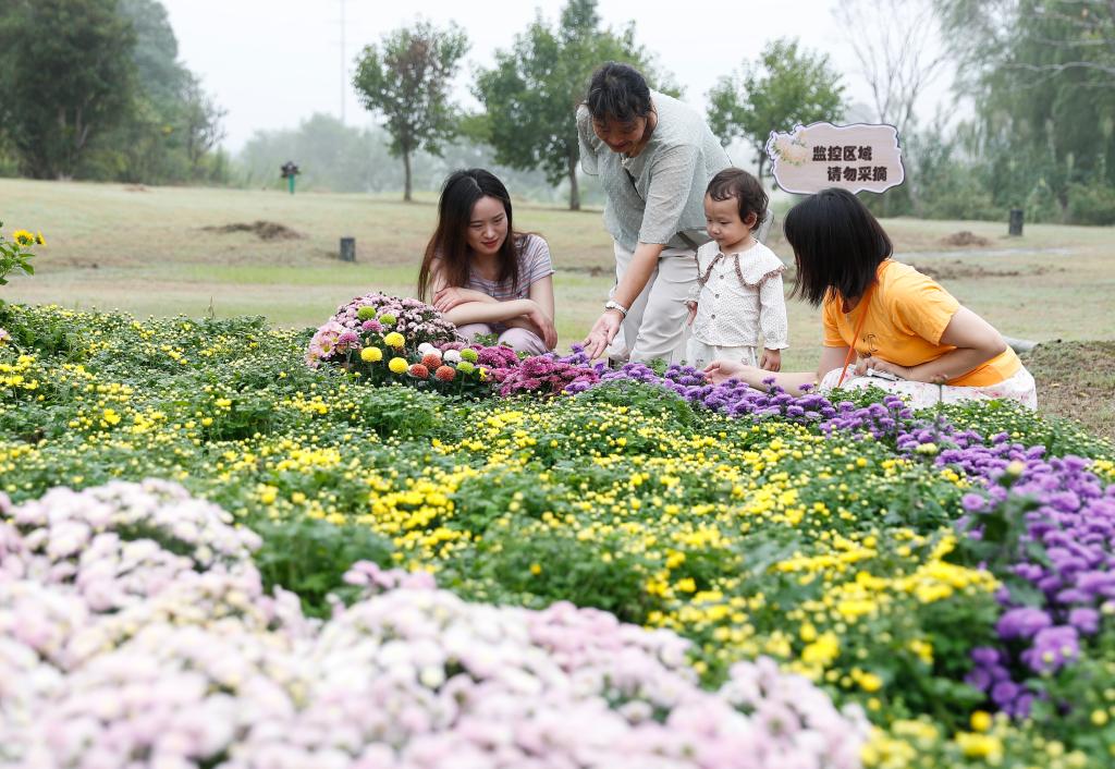 27日、菊の花を楽しむ観光客。(句容=新華社記者/季春鵬)