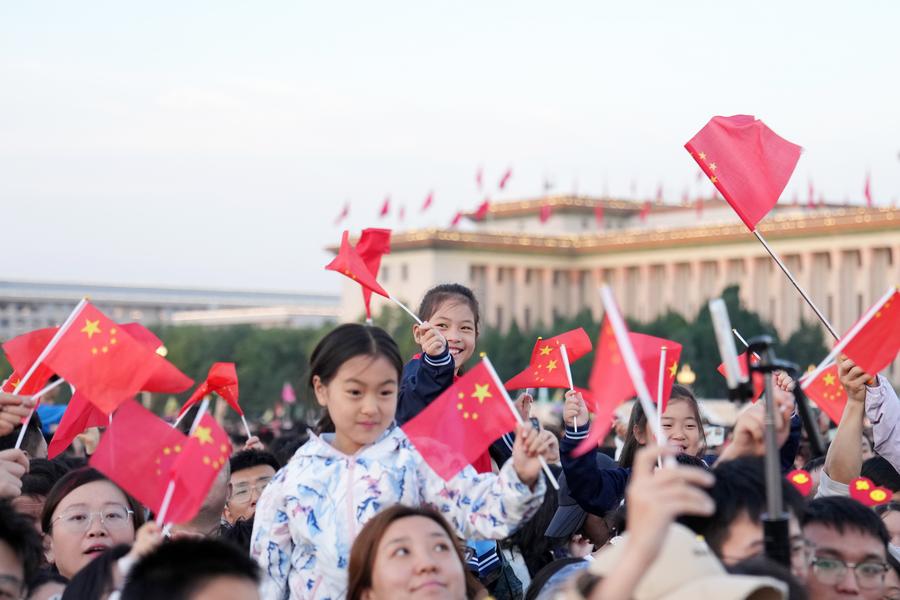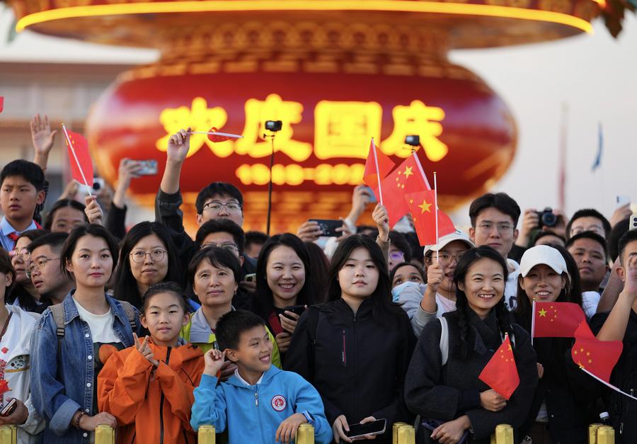 【新華社北京10月1日】中国の国慶節に当たる1日早朝、北京の天安門広場で中華人民共和国成立76周年を祝う国旗掲揚式が行われた。