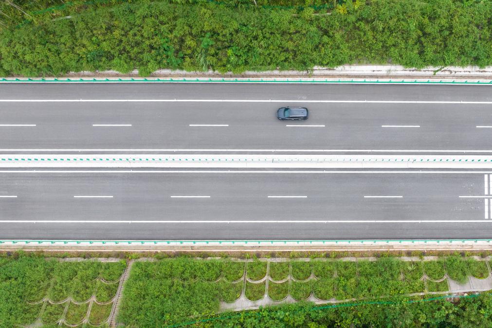 9月29日、桑竜高速道路を走る車。(ドローンから、長沙=新華社記者/陳思汗)