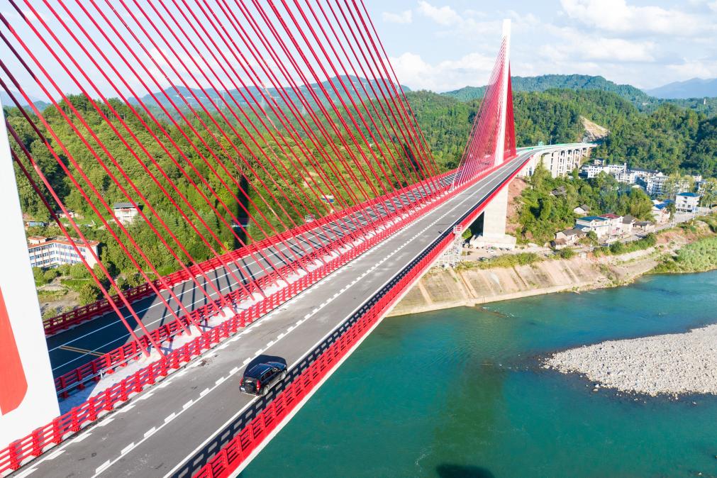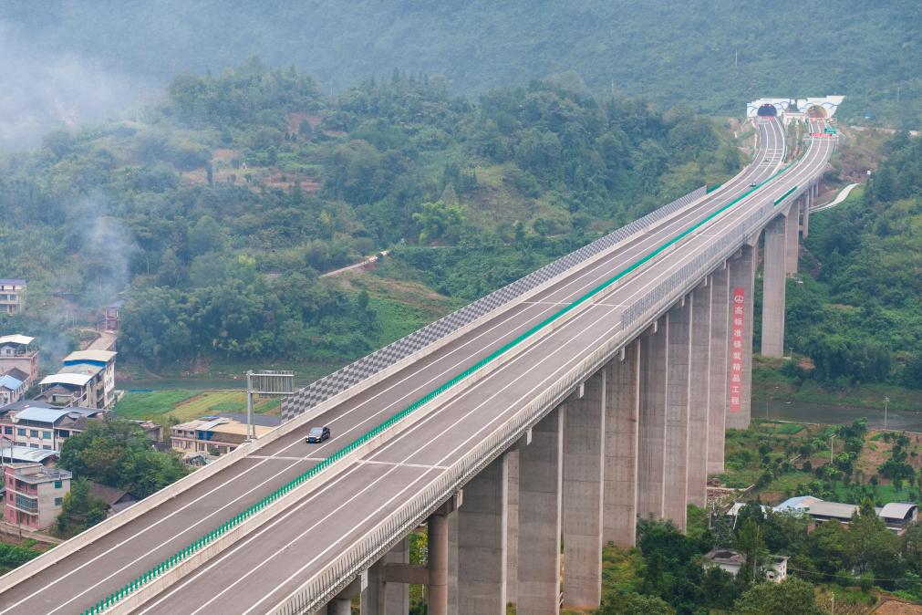 【新華社長沙10月1日】中国湖南省の張家界市桑植県と湘西トゥチャ族ミャオ族自治州竜山県を結ぶ桑竜高速道路が9月29日、開業した。4車線(片側2車線)で、総延長は61・5キロ。インフラ建設大手、中国中鉄傘下の中鉄五局集団が建設に携わった。
