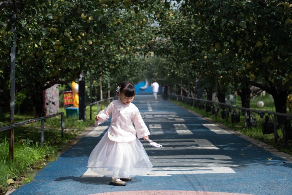 9月20日、碭山県の酥梨文化テーマパークで遊ぶ子ども。(宿州=新華社記者/張端)