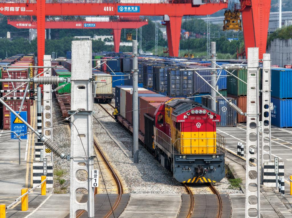 【新華社重慶10月1日】中国西部地域と東南アジアを結ぶ「西部陸海新ルート」の定期列車による貨物輸送の需要が今年、増加している。重慶市の口岸(通関地)物流弁公室によると、1~8月に重慶から同ルートを通じて輸送された貨物は前年同期比30%増の21万5800TEU(20フィートコンテナ換算)で、輸送額は26%増の392億9100万元(1元=約21円)だった。