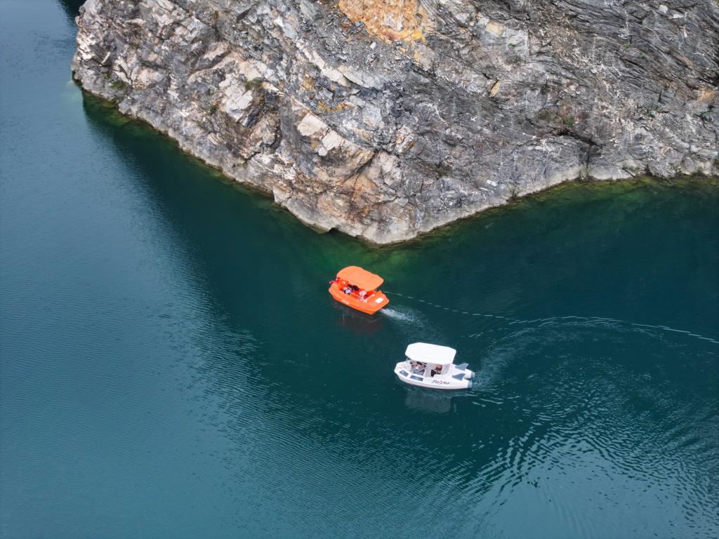 1日、淮安市盱眙県の象山公園内を航行する観光船。(ドローンから、淮安=新華社記者/季春鵬)