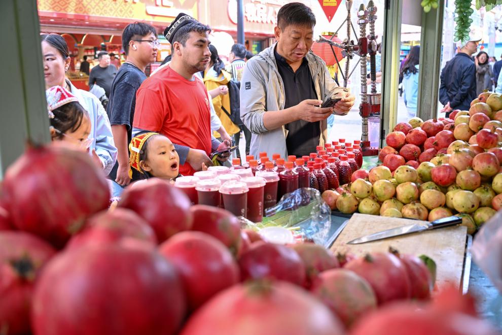【新華社ウルムチ10月2日】中国の国慶節・中秋節連休初日を迎えた1日、新疆ウイグル自治区ウルムチ市の新疆国際大バザールは地域の魅力を発信する場となった。多くの来訪者が観光や買い物を楽しみ、一帯は祝賀ムードに包まれた。
