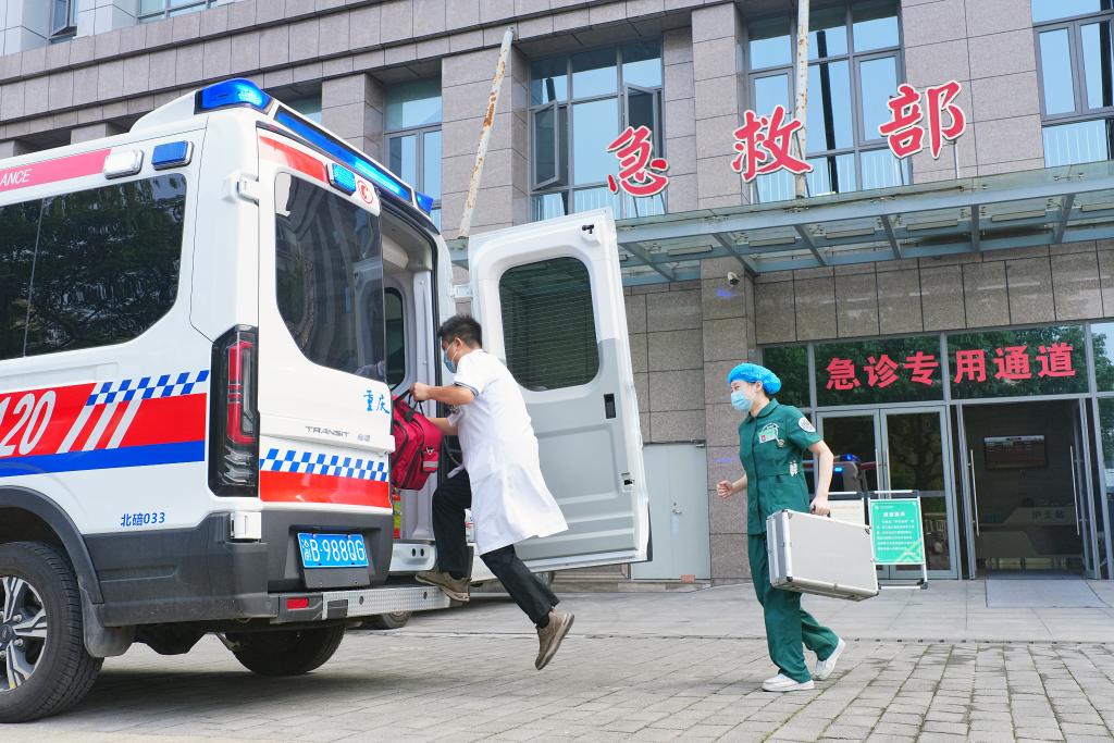 1日、重慶市の北碚区中医院で、往診に向かう医師ら。(北京=新華社配信/秦廷富)