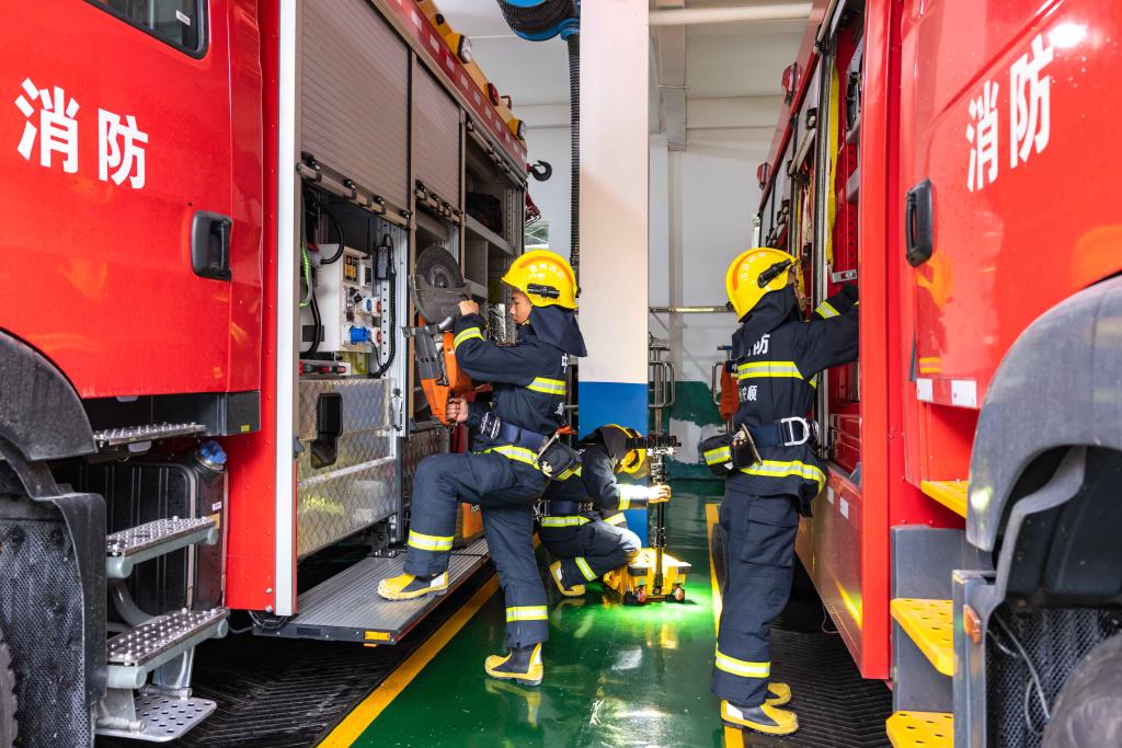 1日、貴州省安順経済技術開発区の消防救援大隊で、装備を点検する隊員。(北京=新華社配信/陳熙)