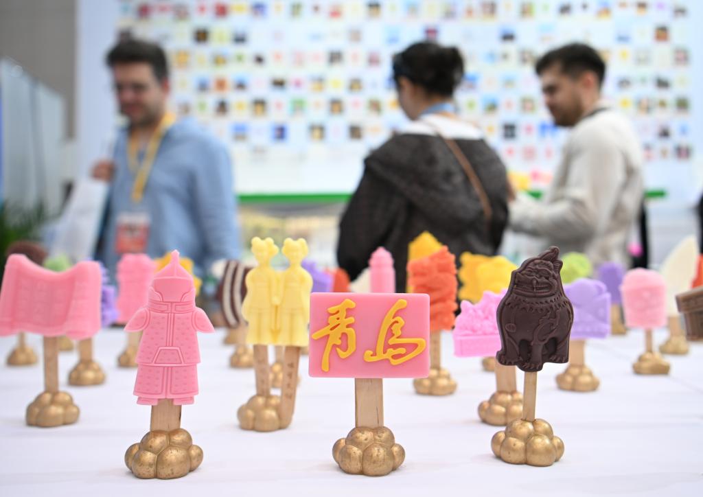 第27回中国アイスクリーム・冷凍食品産業博覧会に展示されたさまざまなアイスクリームの型。(9月24日撮影、天津=新華社記者/孫凡越)