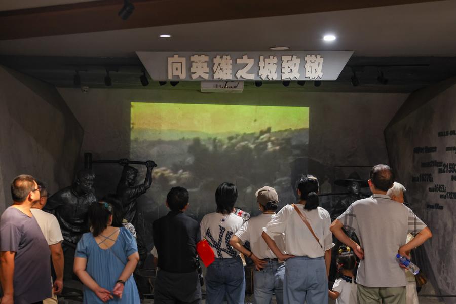 1日、重慶市渝中区の十八梯大隧道遺跡を見学する観光客。(重慶=新華社記者/黄偉)