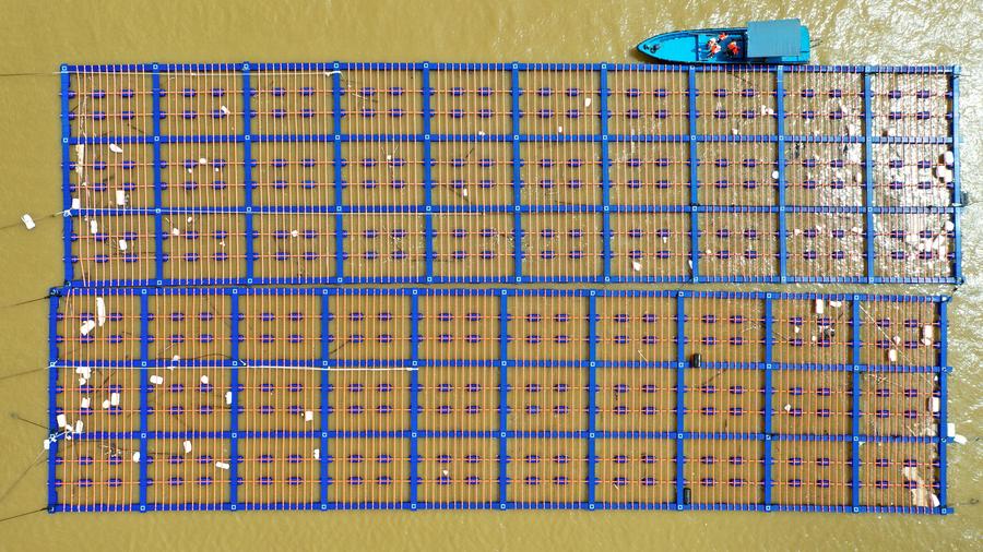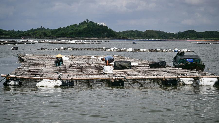 【新華社欽州10月8日】中国広西チワン族自治区欽州市では、6日の台風21号により被害を受けたカキの養殖いかだの修復が進められている。欽州市はカキの養殖で知られ「中国カキの里」と呼ばれる。