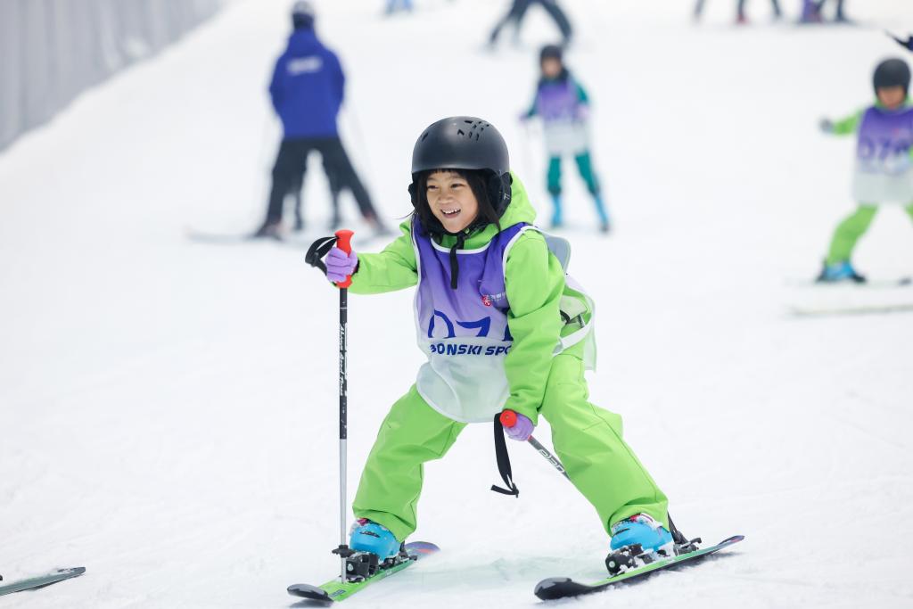 7日、「深圳・前海氷雪世界」でスキーを練習する子ども。(深圳=新華社記者/梁旭)