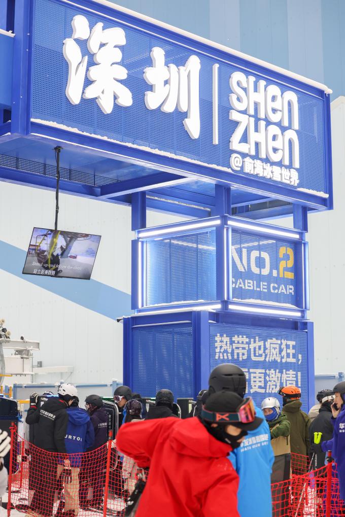 7日、「深圳・前海氷雪世界」でリフトに乗るため列に並ぶ人々。(深圳=新華社記者/梁旭)