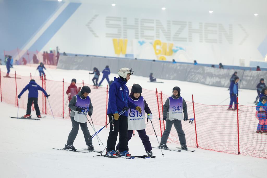7日、「深圳・前海氷雪世界」でスキーやスノーボードを楽しむ人々。(深圳=新華社記者/梁旭)