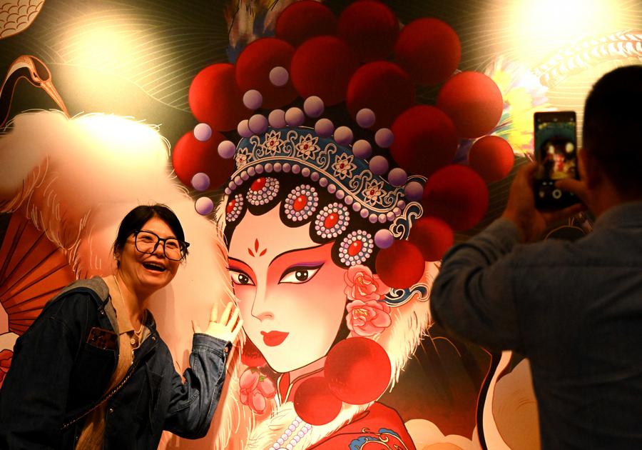 8日、河北省石家荘市の河北博物院で、無形文化遺産の保護成果に関する展覧会を見学に訪れた観光客。(石家荘=新華社配信/陳其保)