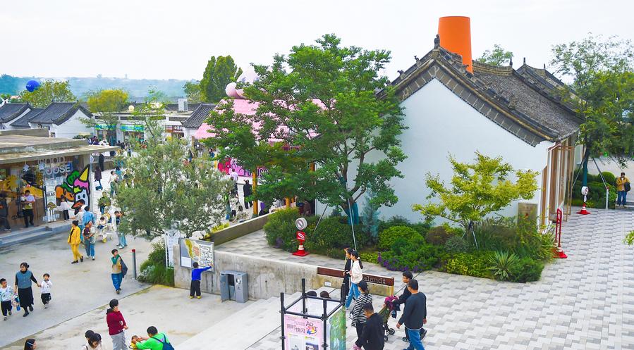 7日、河南省洛陽市孟津県で、伝統家屋を再生した文化・観光複合スポット「魏坡・新序」を散策する観光客。(洛陽=新華社配信/黄政偉)