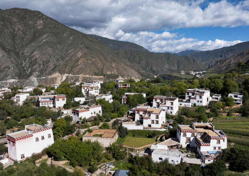 【新華社成都10月10日】中国四川省甘孜(カンゼ)チベット族自治州郷城県では、白く塗られた伝統家屋「白蔵房」が地域の象徴として人々に親しまれている。木や土を用いた独特の構造を持つこの民家は、康巴(カンパ)文化圏に特有の建築様式で、県内12の伝統村落に約6千棟が点在。築400年以上とされるものもあり、全国最大規模の白蔵房群を形成している。