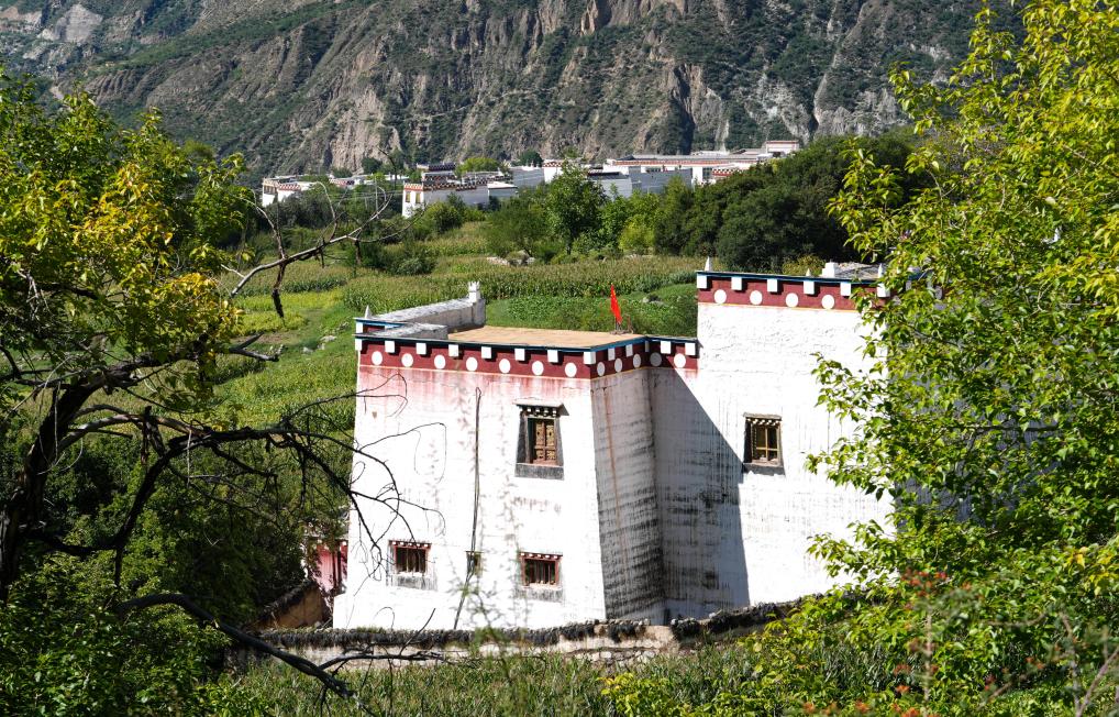 四川省ガンゼ・チベット族自治州郷城県青徳鎮の仲徳村にある白蔵房。(9月21日撮影、ガンゼ=新華社記者/江宏景)