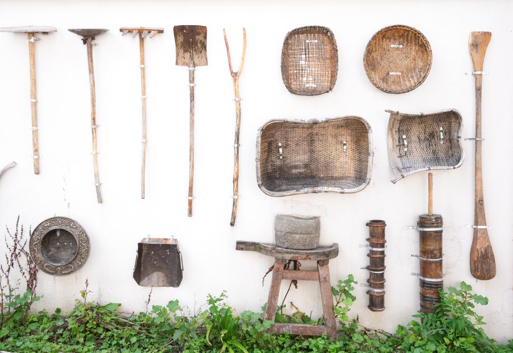 四川省ガンゼ・チベット族自治州郷城県青徳鎮の仲徳村に展示された生産・生活道具。(9月21日撮影、ガンゼ=新華社記者/江宏景)
