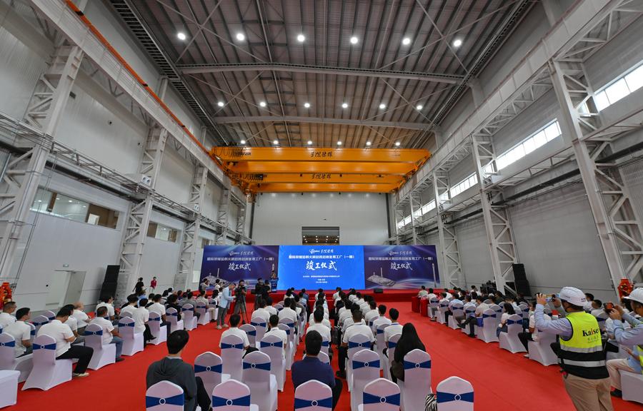 9日、星際栄耀航天科技集団の組み立て・試験・再利用工場(第1期)の竣工式。(文昌=新華社記者/郭程)
