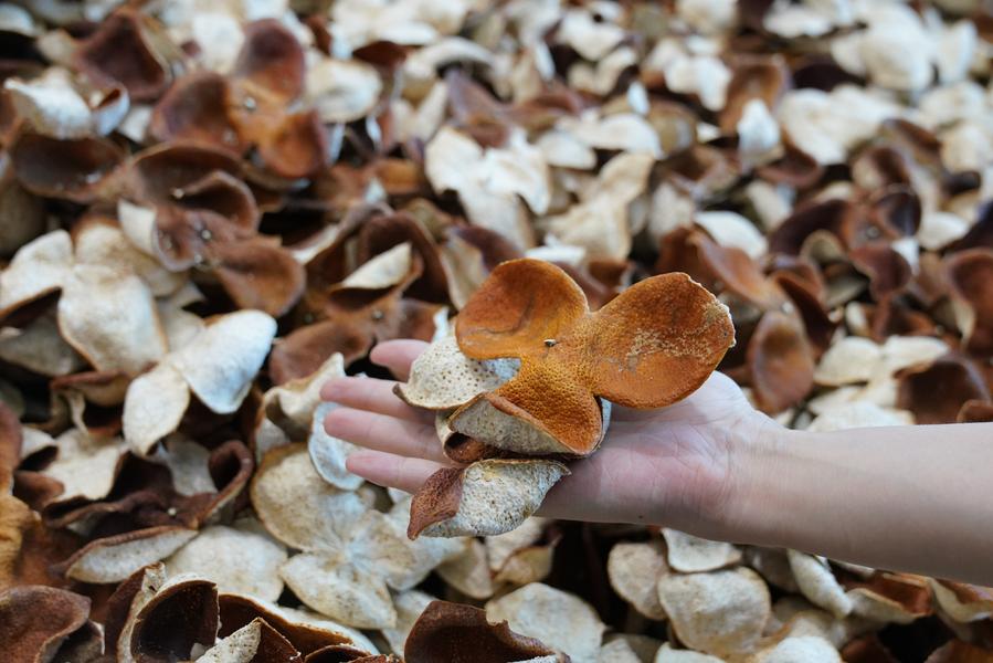 9月28日、浦北県で生産された陳皮。(南寧=新華社記者/趙歓)
