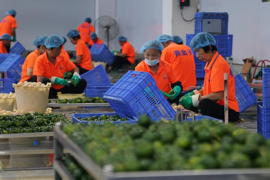 9月28日、青柑(未熟な青い果実)の皮をむく作業員。(南寧=新華社記者/趙歓)