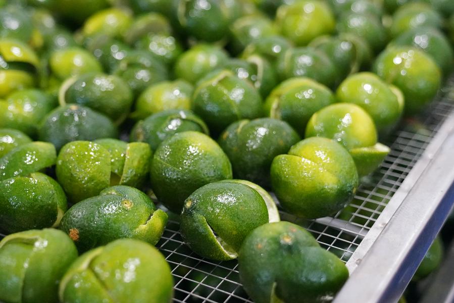 9月28日、青柑(未熟な青い果実)の皮。(南寧=新華社記者/趙歓)