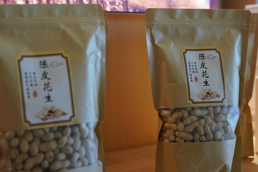 9月28日、浦北県産の陳皮で味付けされた「陳皮ピーナッツ」。(南寧=新華社記者/趙歓)