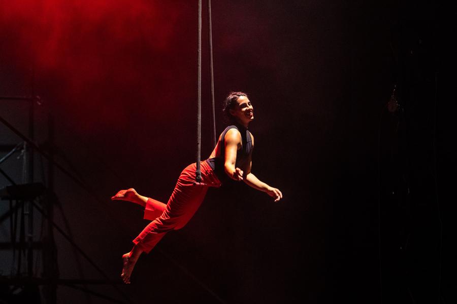 【新華社長沙10月12日】中国湖南省張家界市で11日、「2025張家界国際新雑技演劇ウイーク」が始まった。フランスやロシア、ドイツ、チリ、イタリアなど十数カ国・地域から集まった雑技団員が、演劇や舞踊、音楽、ニューメディアなどを取り入れた多彩なパフォーマンスを5日間で60回余り披露する。