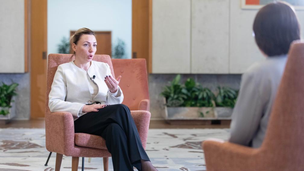 2日、ベオグラードで新華社のインタビューに応じるタティヤナ・マツラ氏。(ベオグラード=新華社配信/王韡)