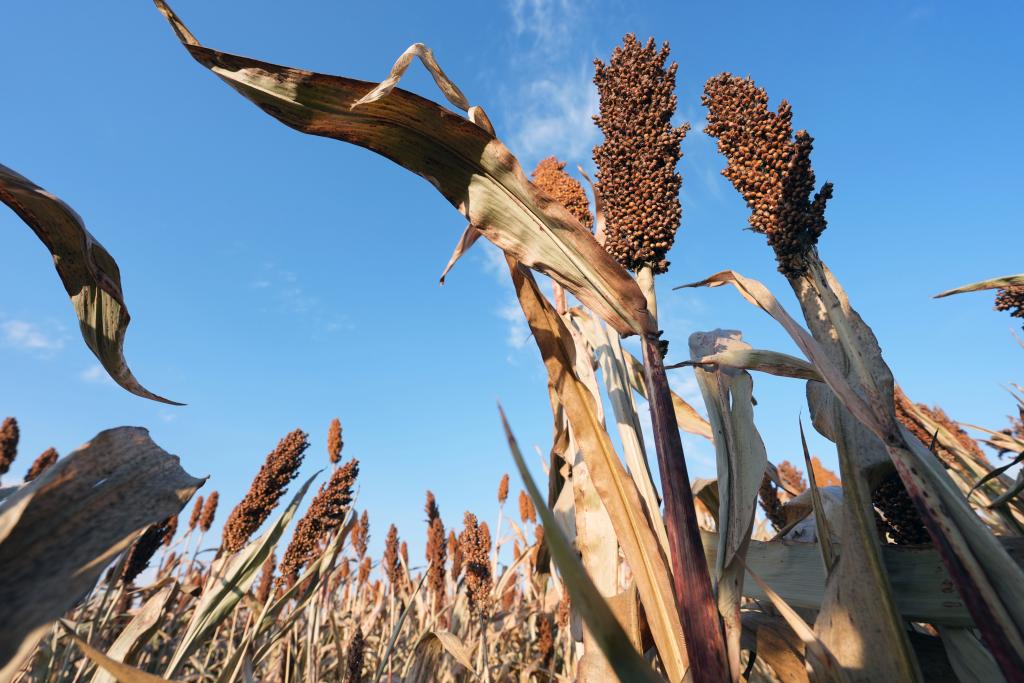 11日、黒竜江省肇東(ちょうとう)市にある北大荒農墾集団傘下の四方山農場で収穫期を迎えたコーリャン。(ハルビン=新華社記者/王松)