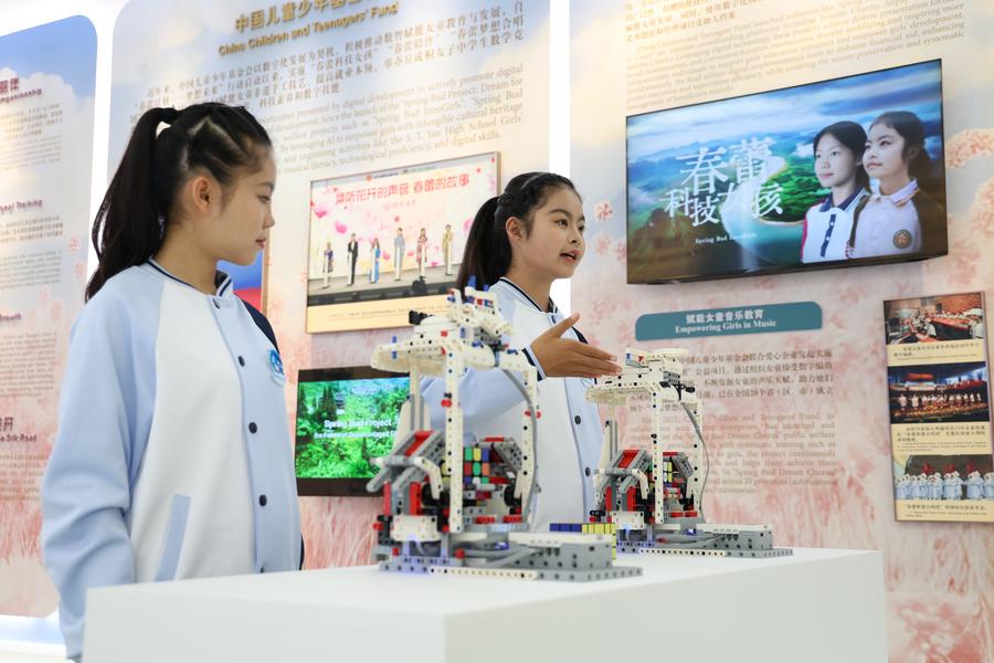 【新華社北京10月15日】中国北京市の中国婦女児童博物館で14日、世界女性サミットの関連行事として「デジタル・スマート技術による女性・女児のエンパワーメント成果展」が始まった。