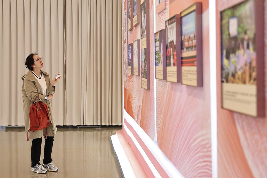 14日、女性・女児エンパワーメント展を見学する来場者。(北京=新華社記者/張玉薇)