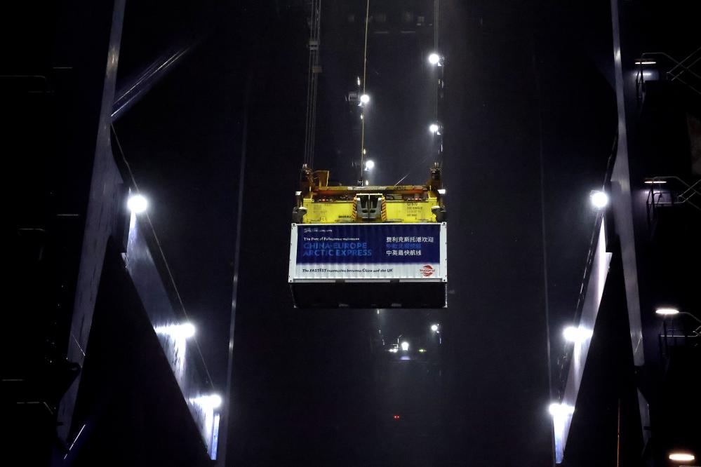 【新華社ロンドン10月15日】北極海を経由してアジアと欧州を結ぶ「中欧北極コンテナ直行航路」の初便が13日夜、20日間の航海を終えて英国フェリクストウ港に到着した。浙江省の寧波舟山港を出発し、標準コンテナ約4千個を積載。英国のほか、ドイツ、ポーランド、オランダの港でも順次荷降ろしを行う。