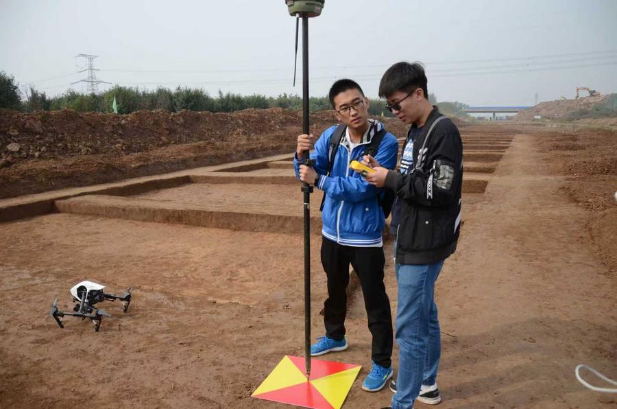 空から見た小高遺跡。(ドローンから、済南=新華社配信)