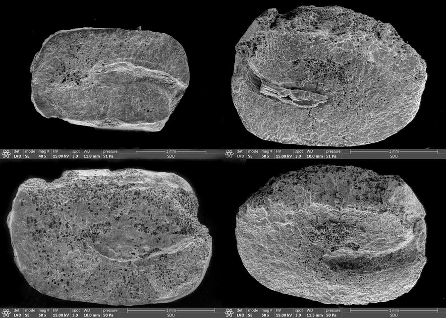 走査型電子顕微鏡が映し出した炭化アズキの画像。(済南=新華社配信)