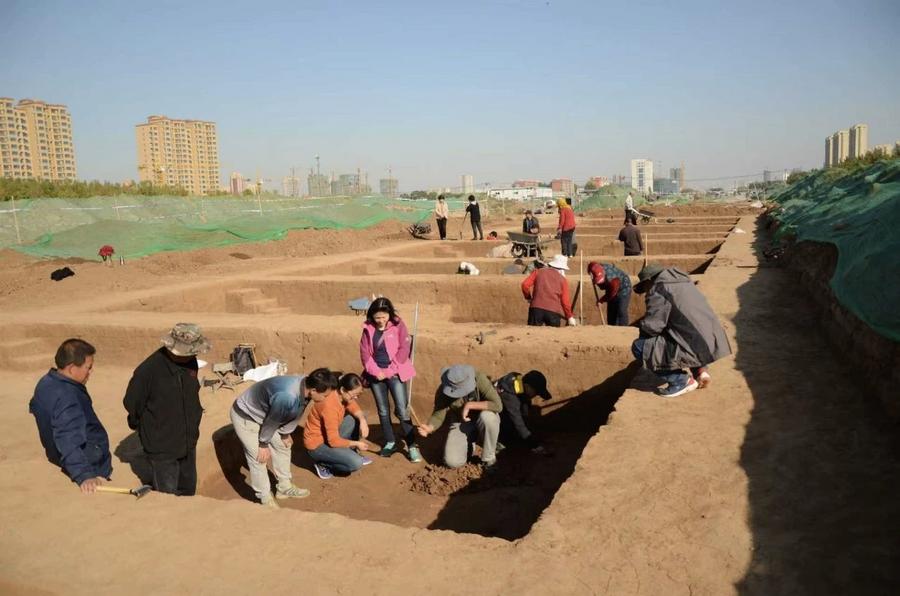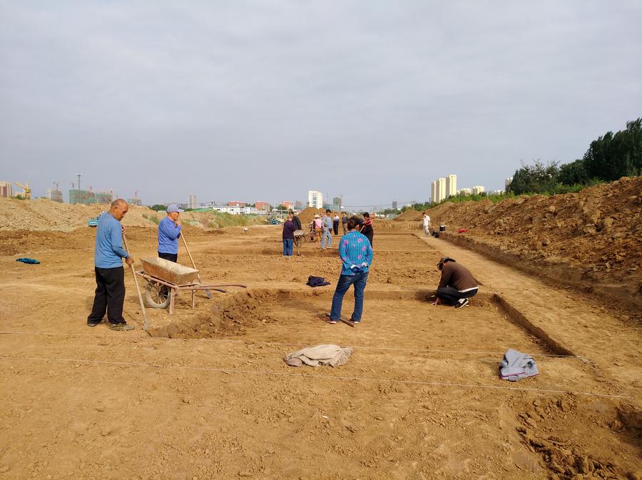 小高遺跡の発掘作業現場。(済南=新華社配信)