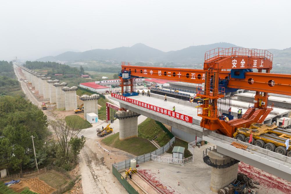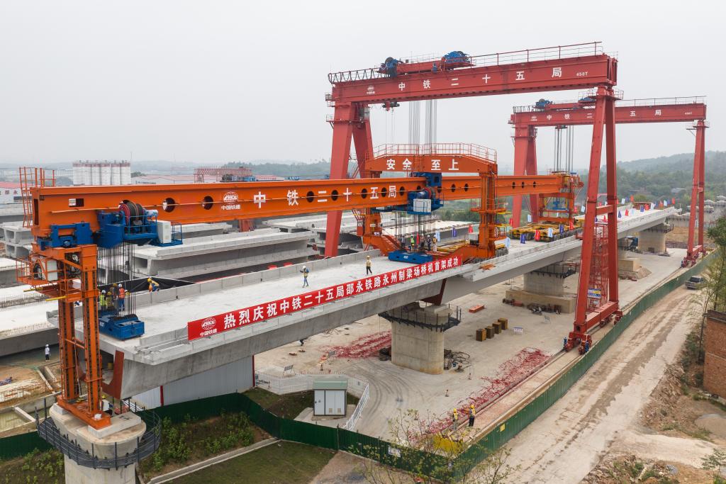 邵永高速鉄道は全長約96キロ、設計速度は時速350キロ。縦横各8ルートから成る高速鉄道網「八縦八横」のうち、内モンゴル自治区フフホト-広西チワン族自治区南寧線を構成する重要部分で、北は婁底-邵陽鉄道、南は衡陽-柳州鉄道と接続する。完成後は地域鉄道網の整備が進み、中部地域の質の高い発展を大きく促進する。
