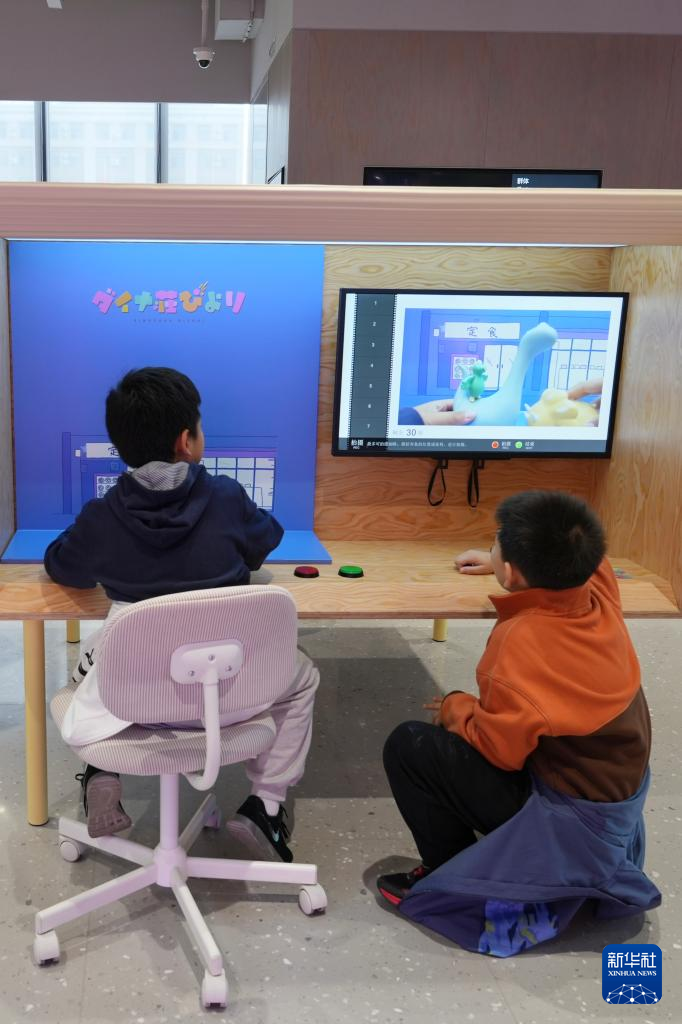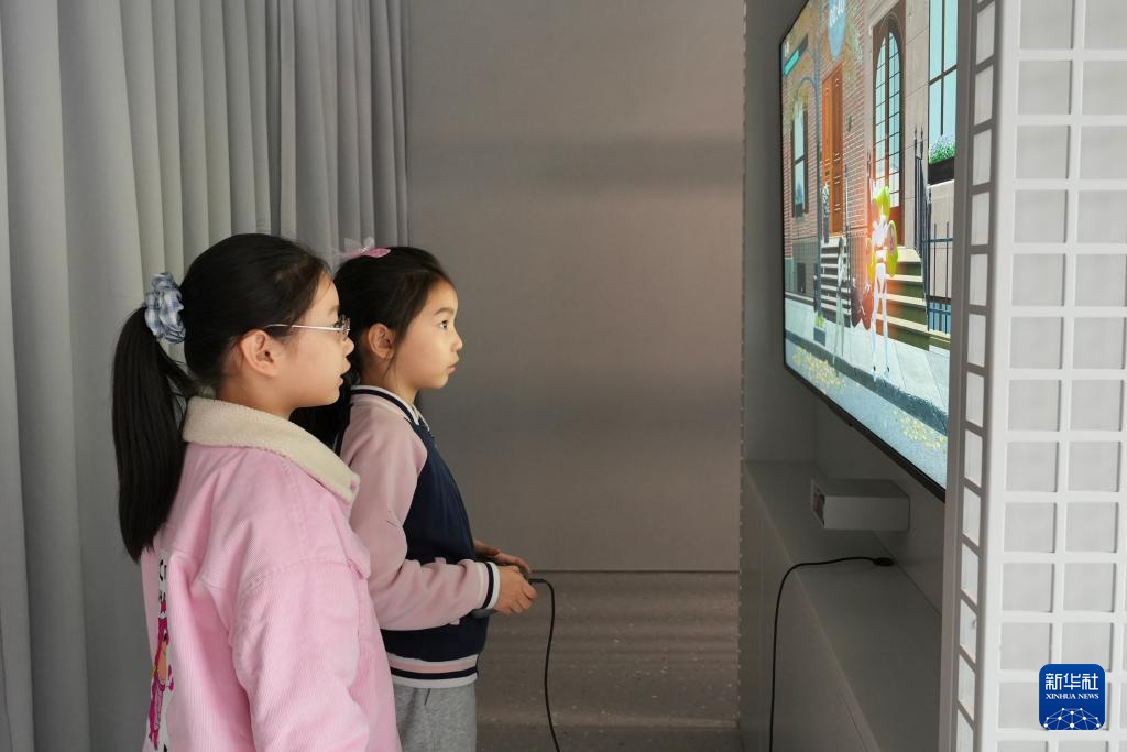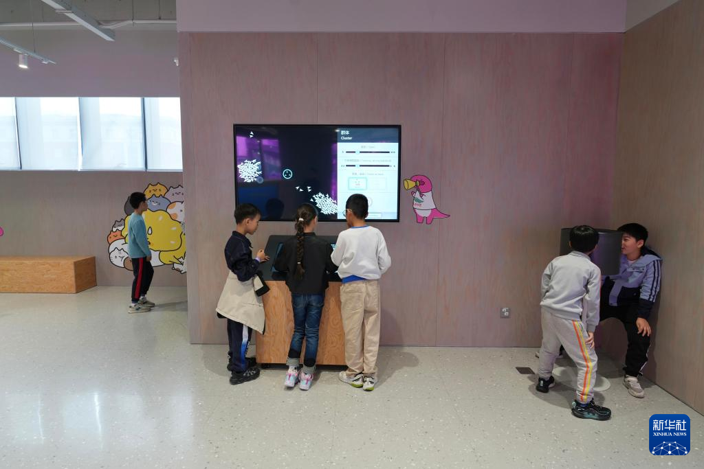15日、自分の「分身」が登場する格闘ゲームを楽しむ子どもたち。(北京=新華社記者/許芸潁)
