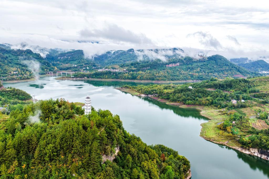 【新華社重慶10月16日】中国重慶市石柱トゥチャ族自治県橋頭鎮は武陵山の中腹に位置し、大風堡原生林や藤子溝国家湿地公園の美しい景観を誇る。