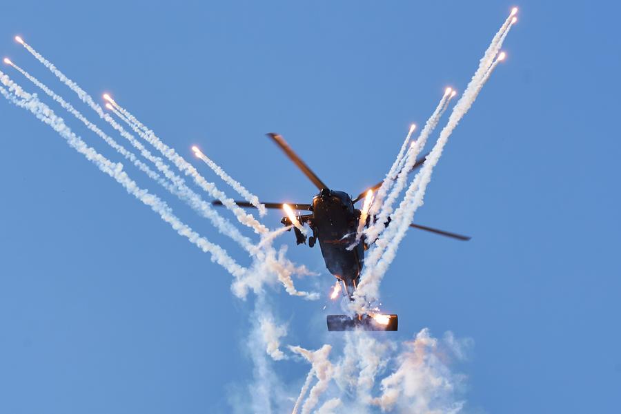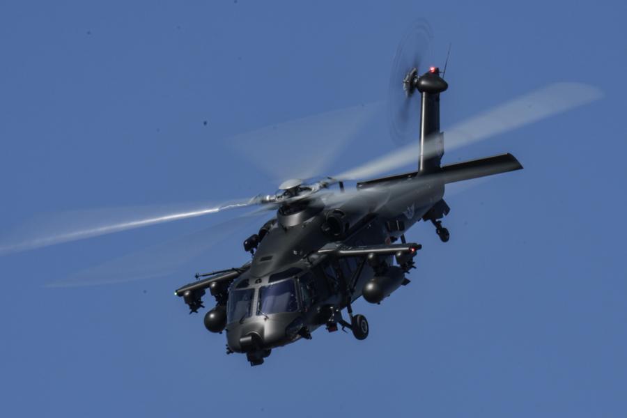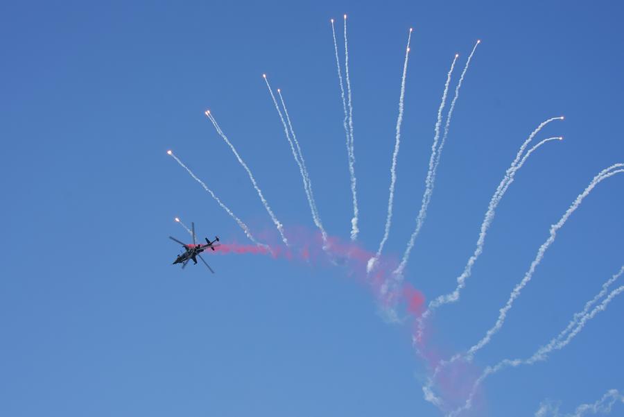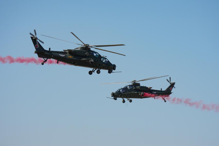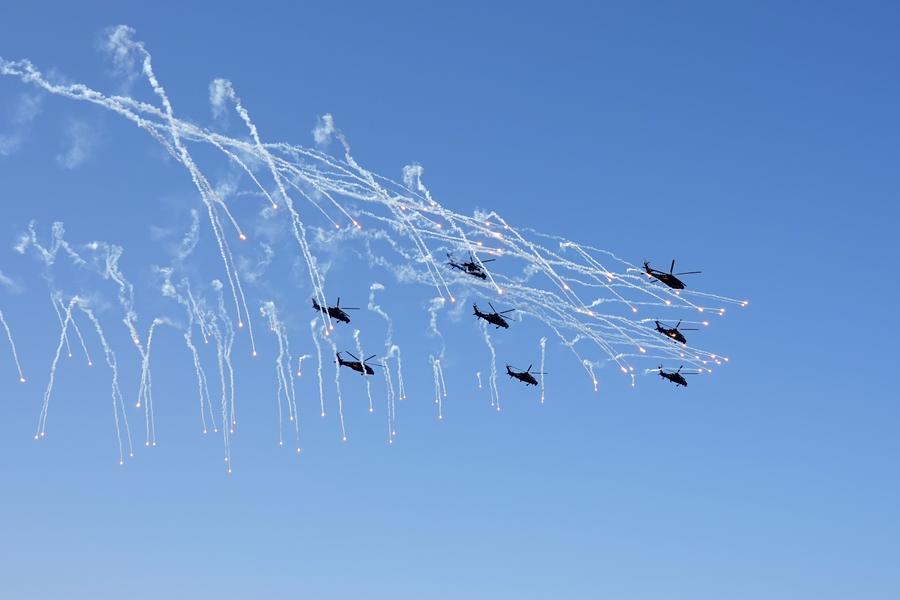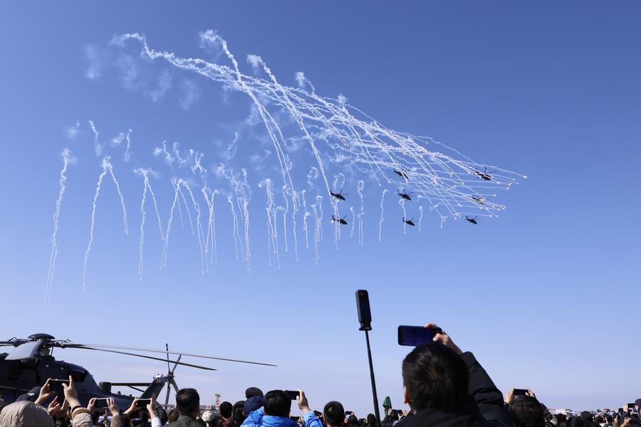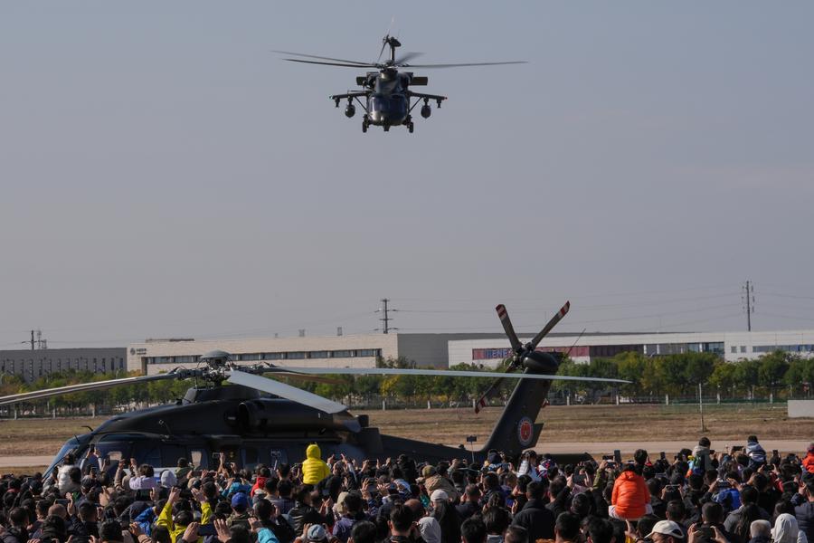 【新華社天津10月19日】中国天津市で開かれている第7回中国天津国際ヘリコプター博覧会は18日、一般公開に入った。中国人民解放軍陸軍「風雷」飛行表演隊がアクロバット飛行を披露し、来場者を魅了した。