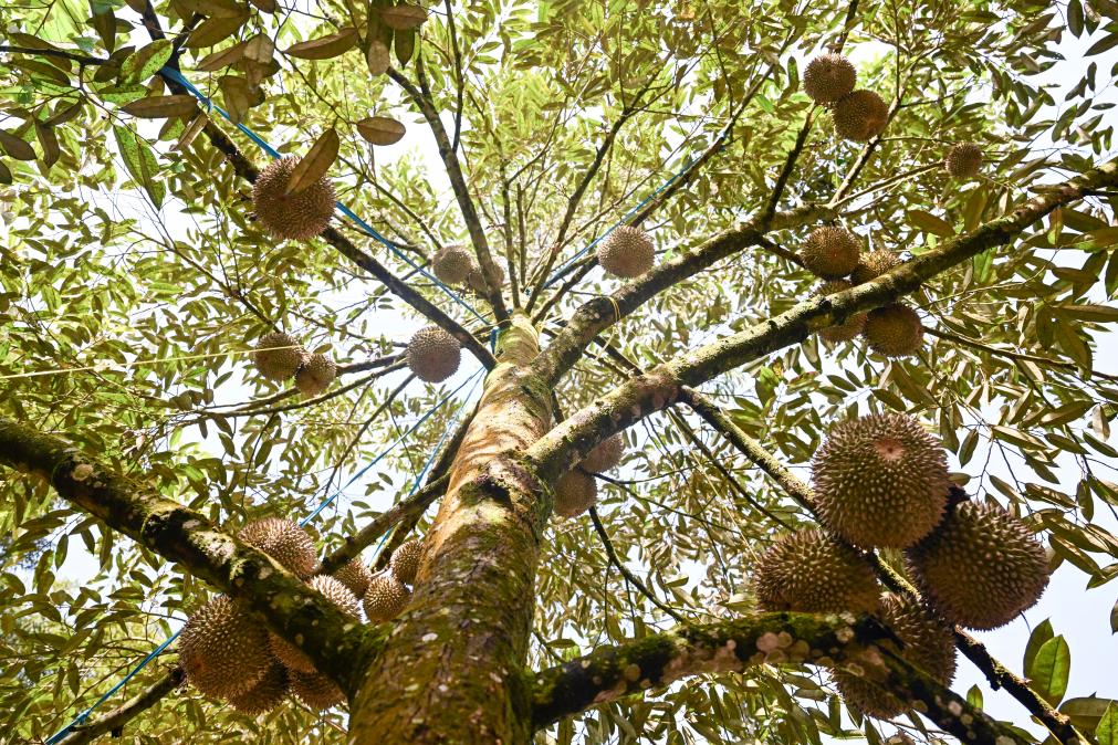 【新華社クアラルンプール10月21日】マレーシア・パハン州ラウブはドリアンの重要な産地の一つ。独特の熱帯雨林気候と土壌環境に恵まれ、ここで生産されるムサンキング(猫山王)、ブラックソーン(黒刺)などの高級品種は果肉がしっとりとして濃厚な風味を持ち、国際市場で高い評価を得ている。