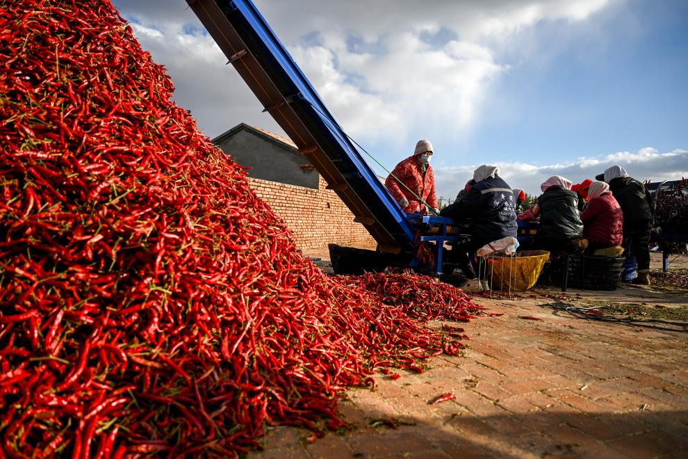 【新華社通遼10月22日】乾燥赤トウガラシの産地として知られる中国内モンゴル自治区通遼市開魯(かいろ)県で、トウガラシの収穫が最盛期を迎えている。同県産のトウガラシは肉厚で品質が高く、国内外の市場で広く販売されている。栽培面積はここ数年、約4万ヘクタールで安定している。