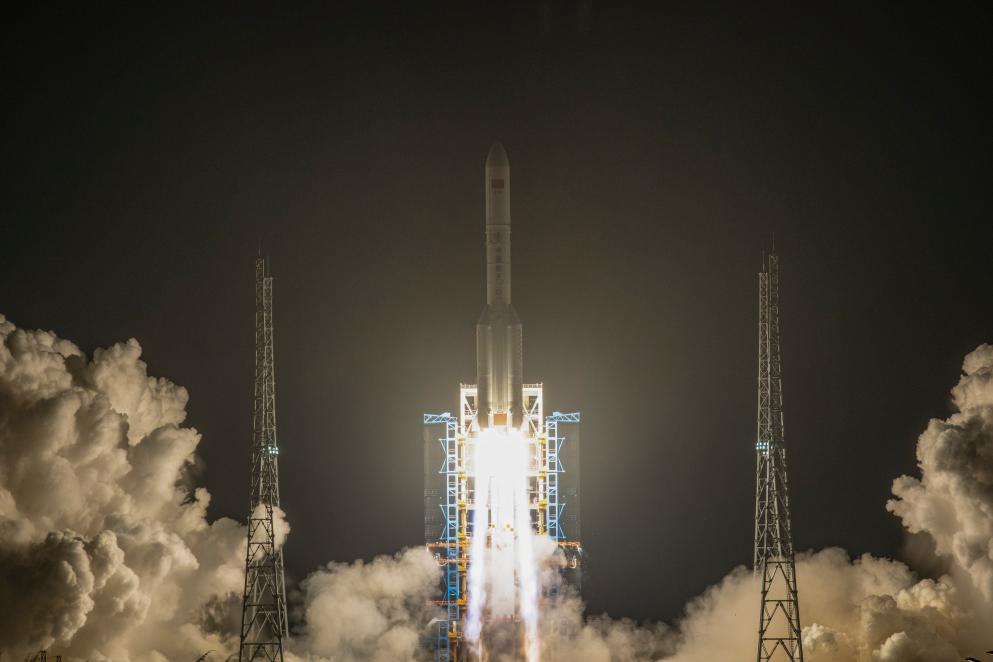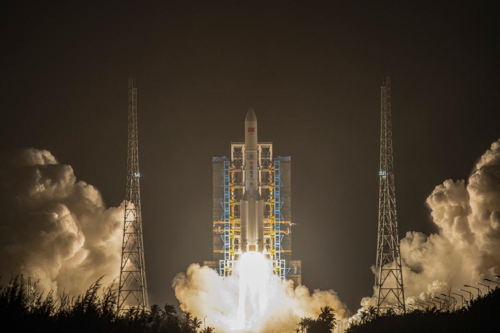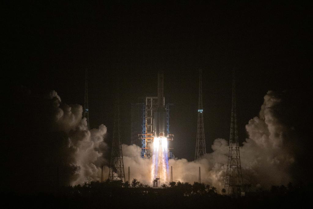 23日、文昌宇宙発射場から打ち上げられた運搬ロケット「長征5号」。(文昌=新華社配信/都鑫鑫)