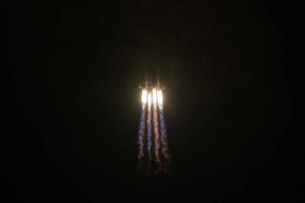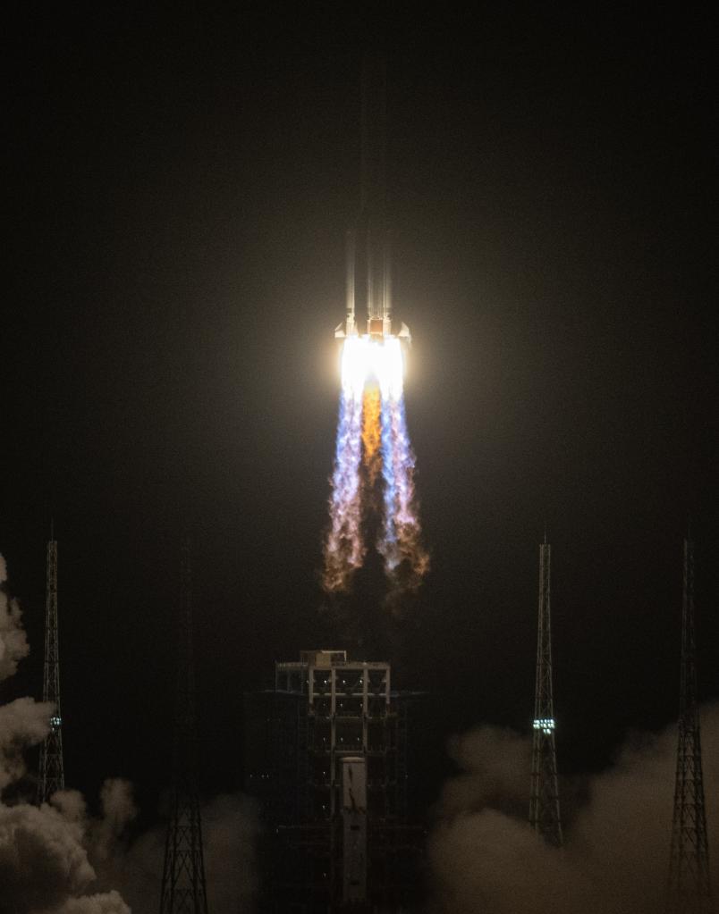 23日、文昌宇宙発射場から打ち上げられた運搬ロケット「長征5号」。(文昌=新華社記者/蒲暁旭)
