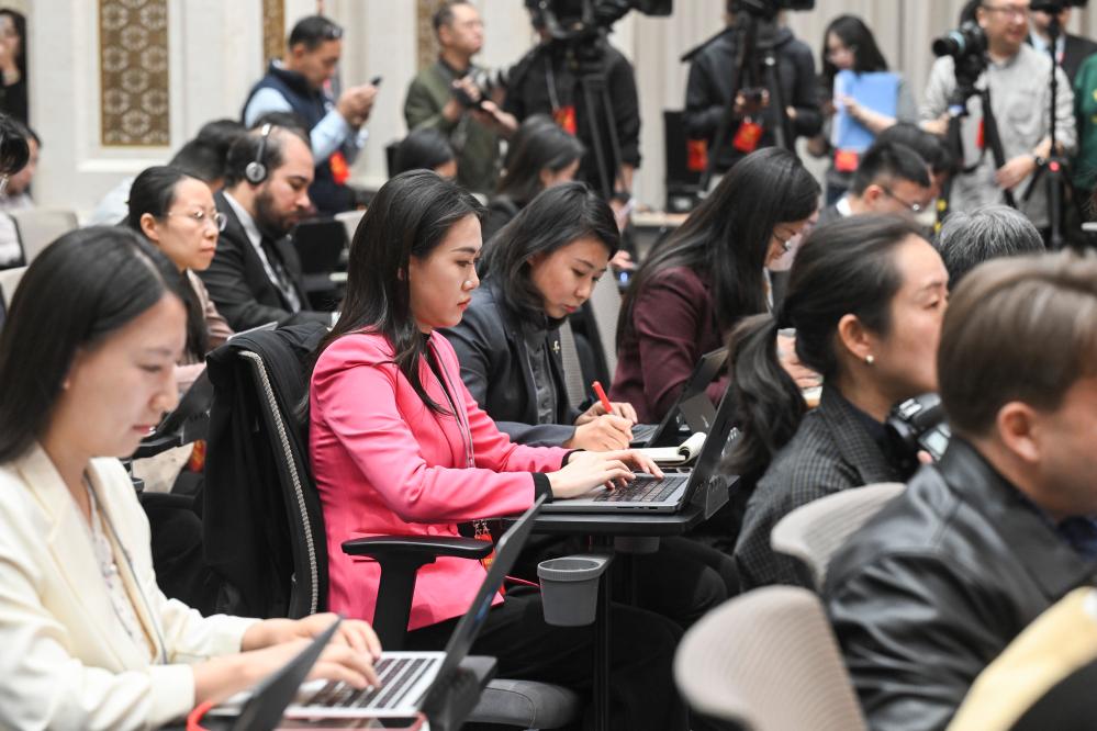 24日、記者会見を取材する記者たち。(北京=新華社記者/金良快)