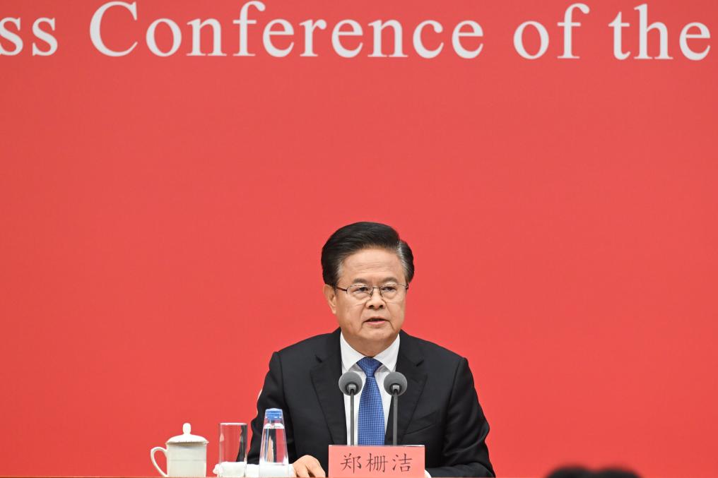 24日、記者会見で発言する中国国家発展改革委員会の鄭柵潔(てい・さんけつ)党組書記・主任。(北京=新華社記者/金良快)